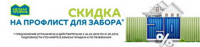 Компания Металл Профиль предоставляет скидку 20% на профнастиллист для забора и П-образную планку* в период с 26.03.2018 г. по 31.05.2018 г.*