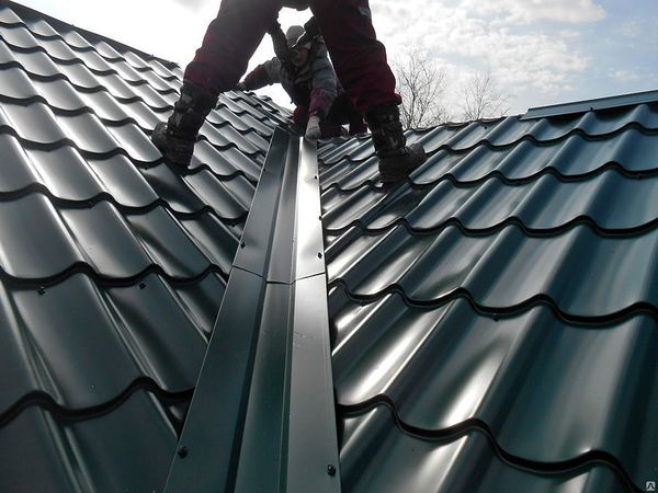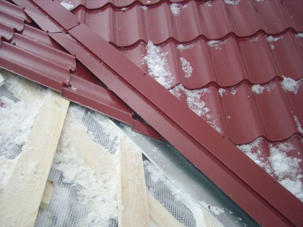Верхние планки ендовы монтируются к обрешетке при помощи саморезов, которые закрепляют через гребни волны металлочерепицы или верхние полки трапеции профилированного листа. Ендовы значительной протяженности закрывают несколькими планками, располагая их внахлест (10 см) и осуществляя монтаж от нижней части кровли в направлении верхней.
