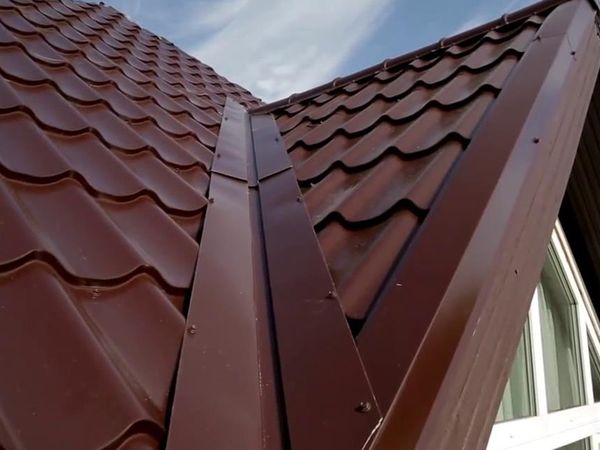 Первостепенное назначение верхней планки ендовы — декоративное. Элемент монтируется после укладки кровельного материала и закрывает собой стыки листов, пряча возможную разницу в размерах и мелкие дефекты кромок. Рельеф крыши становится однородным, а переходы между скатами — более гармоничными.