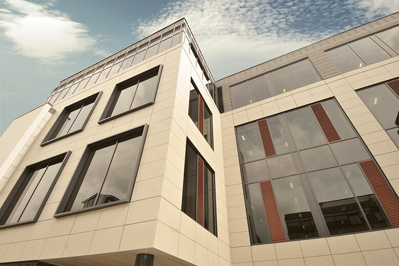 Вентилируемые фасады «Металл Профиль» с облицовкой керамогранитом могут использоваться во всех типах строительства: промышленном, торговом, коттеджном и пр.